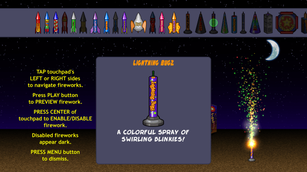 - NEW: Zoom option, added to settings, makes fireworks appear smaller or larger.